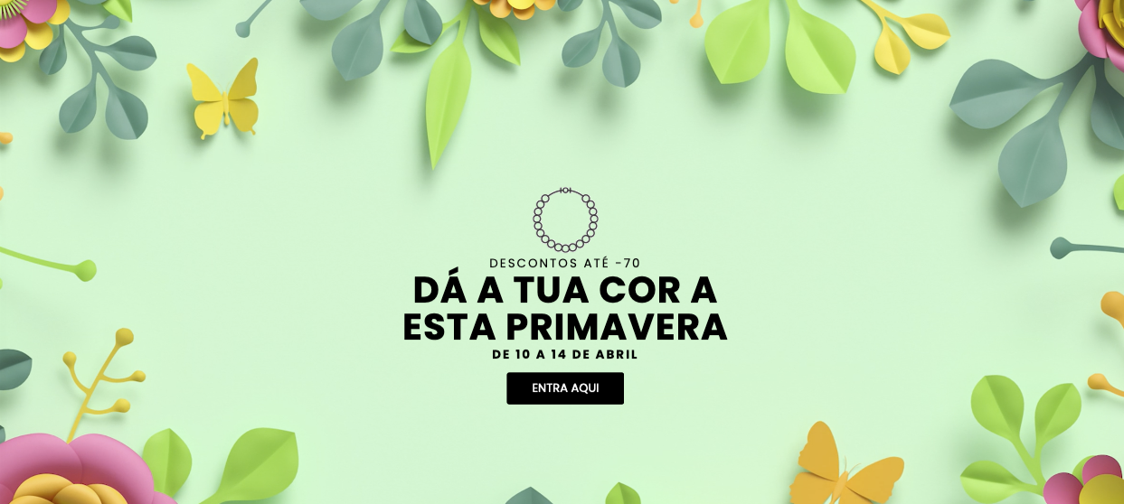 Além disso, a nossa ação especial inclui uma variedade de artigos de joalharia para acrescentar esse toque de elegância ao teu estilo primaveril. Desde delicados fios até chamativos brincos e deslumbrantes pulseiras, temos peças que complementam qualquer outfit e te farão brilhar ainda mais com o sol da primavera.